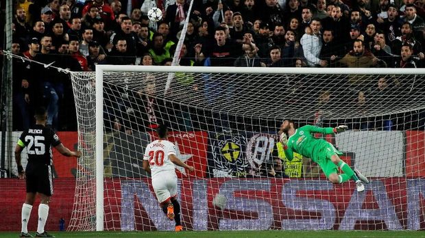 David de Gea melakukan penyelamatan penting dalam laga Liga Champions menghadapi Sevilla. (REUTERS/Jon Nazca) |