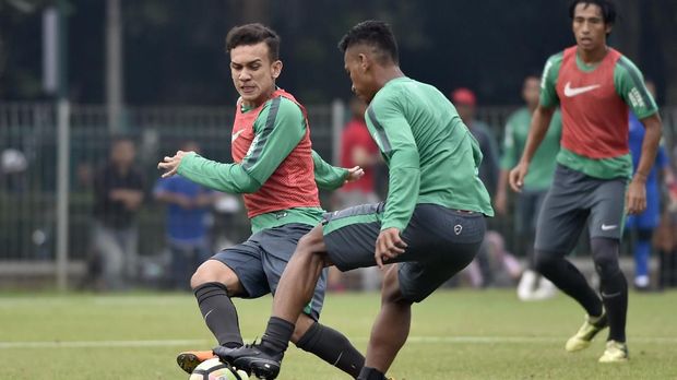 Timnas Indonesia menggelar pemusatan latihan di Jakarta jelang menghadapi Singapura pada 21 Maret. (CNN Indonesia/Titi Fajriyah)