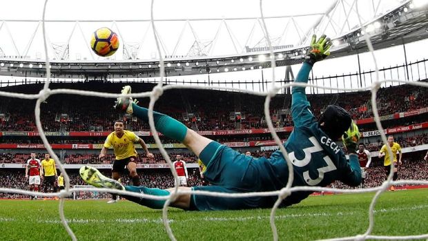 Petr Cech berhasil menahan tendangan penalti Troy Deeney. (Foto: REUTERS/Eddie Keogh)
