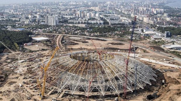Kondisi Stadion Samara Arena yang tengah dibangun tahun 2017. (AFP PHOTO/Mladen ANTONOV)