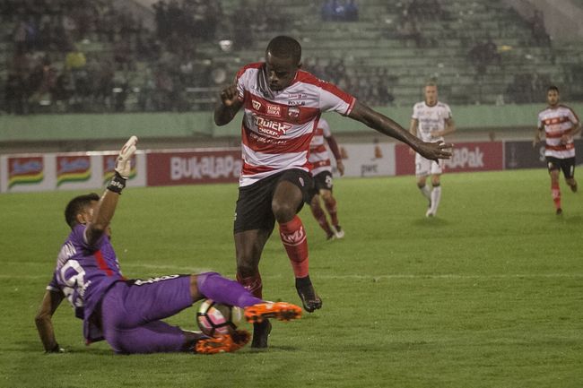 Duel Madura United lawan Persib Bandung berjalan menarik. Kedua tim saling serang dalam permainan yang terbuka.