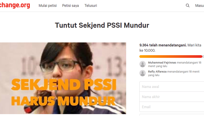 Dikutip dari situs change.org, dirinya menuliskan tuntutan agar Ratu Tisha mundur dari organisasi PSSI.