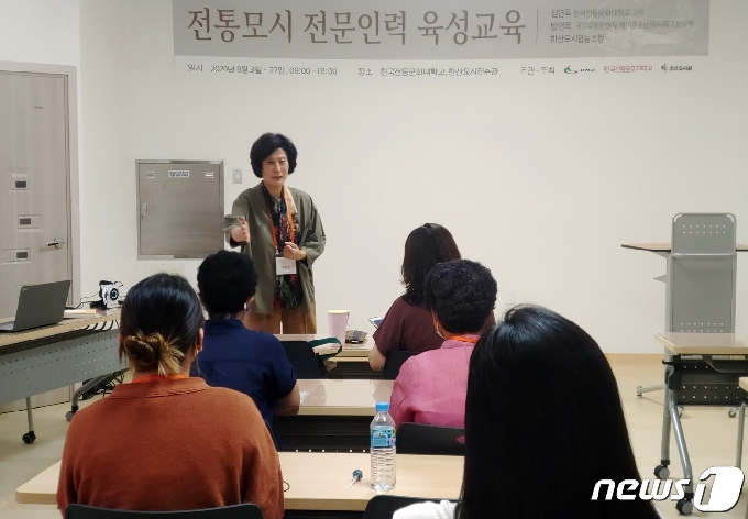 | 한산모시 전문가가 교육생을 상대로 전문인력 육성 교육을 하고 있다.(서천군 제공)© 뉴스1 |